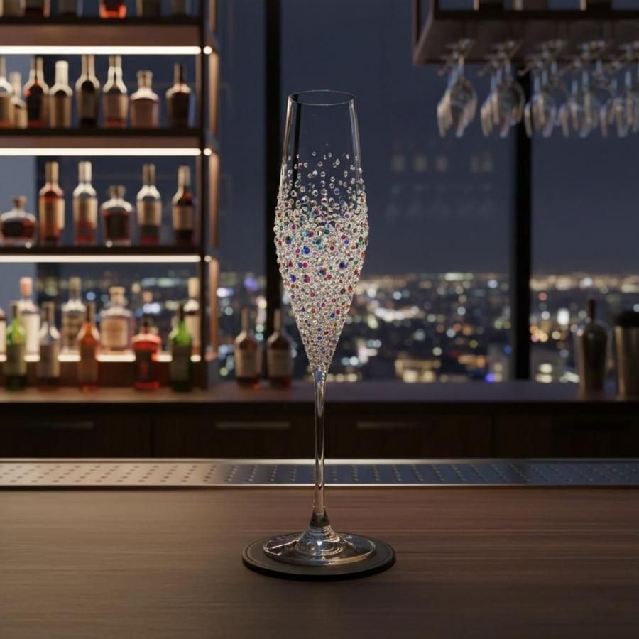 グラスボトムに散りばめられたクリスタルが、シャンパンの泡を一層美しく引き立て、特別なひとときを演出します。