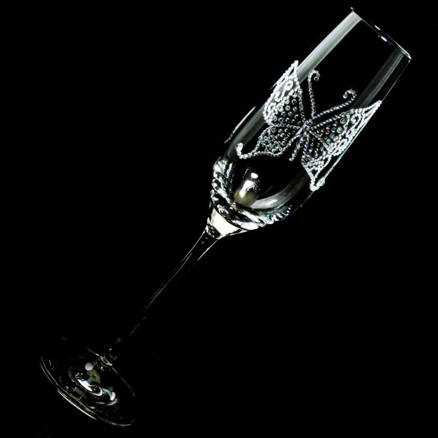 【シャンパングラス バタフライ】高級ギフトボックス付き 結婚祝い 誕生日 プレゼント ギフト スワロフスキー デコグラス