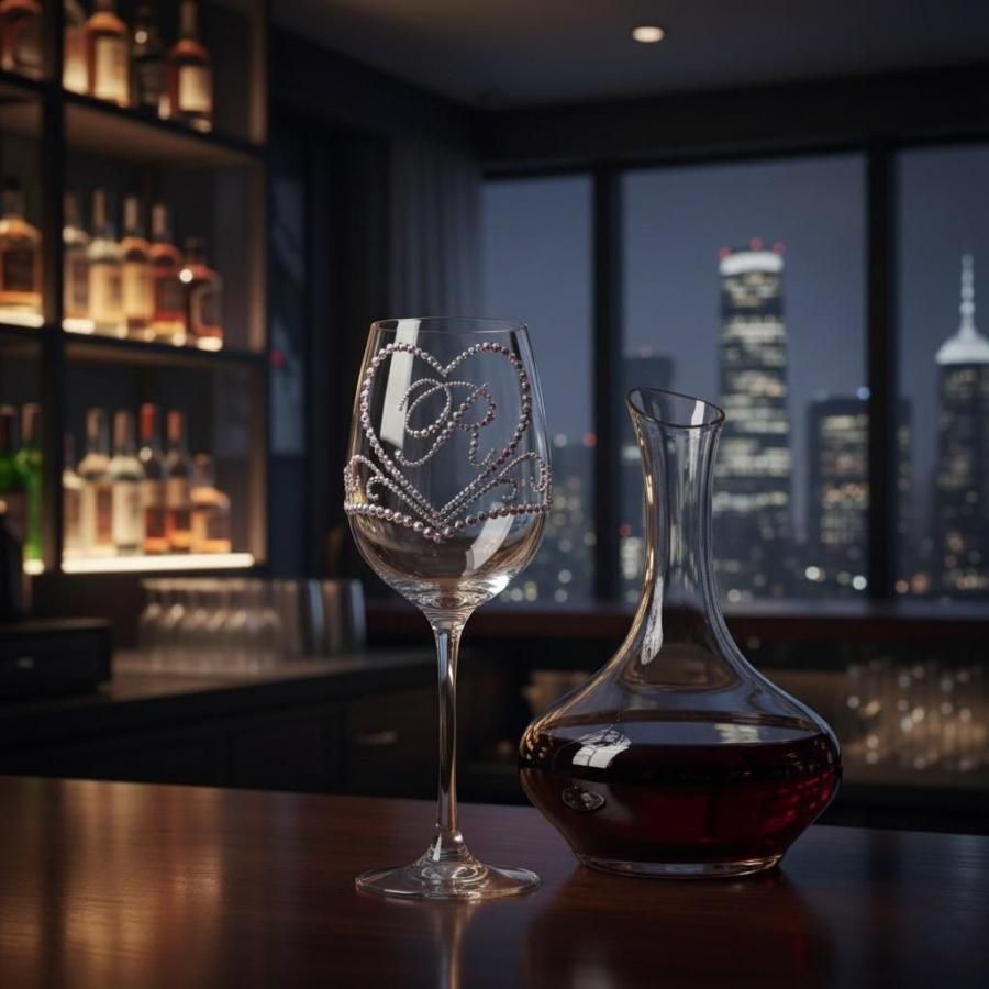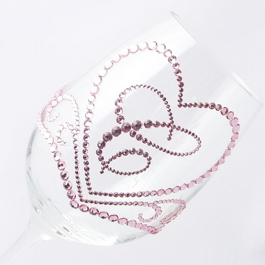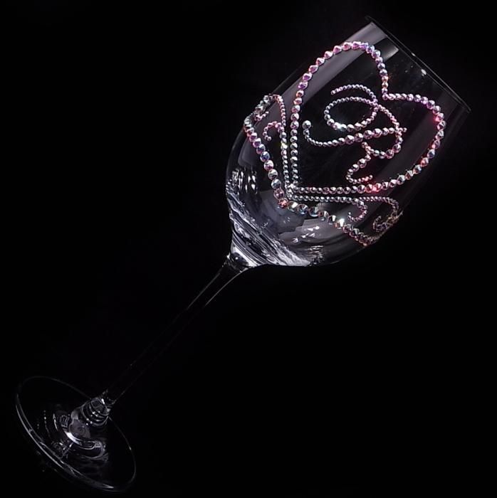 - 商品名:【ワイングラス ハートのティアラ&イニシャル】スワロフスキーデコレーション
