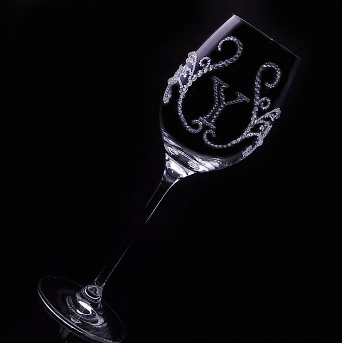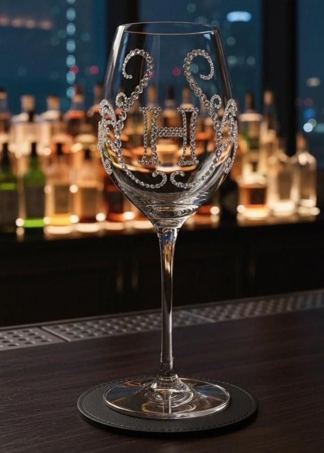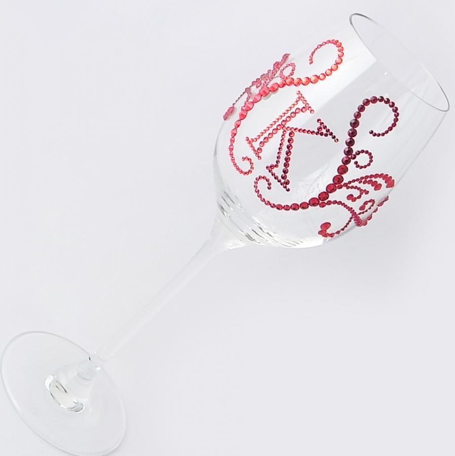 きらめくスワロフスキーで華やかにデコレーションした特別なワイングラス。