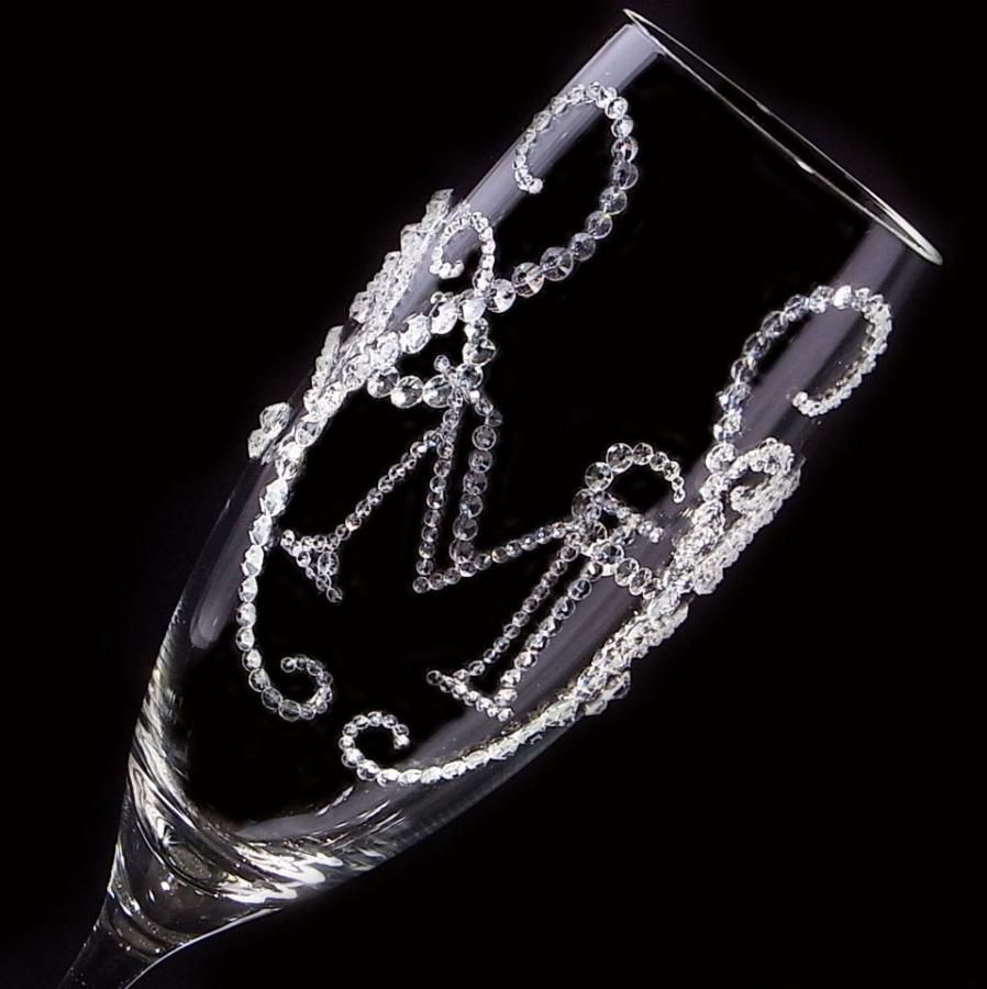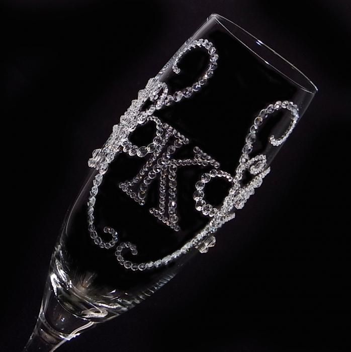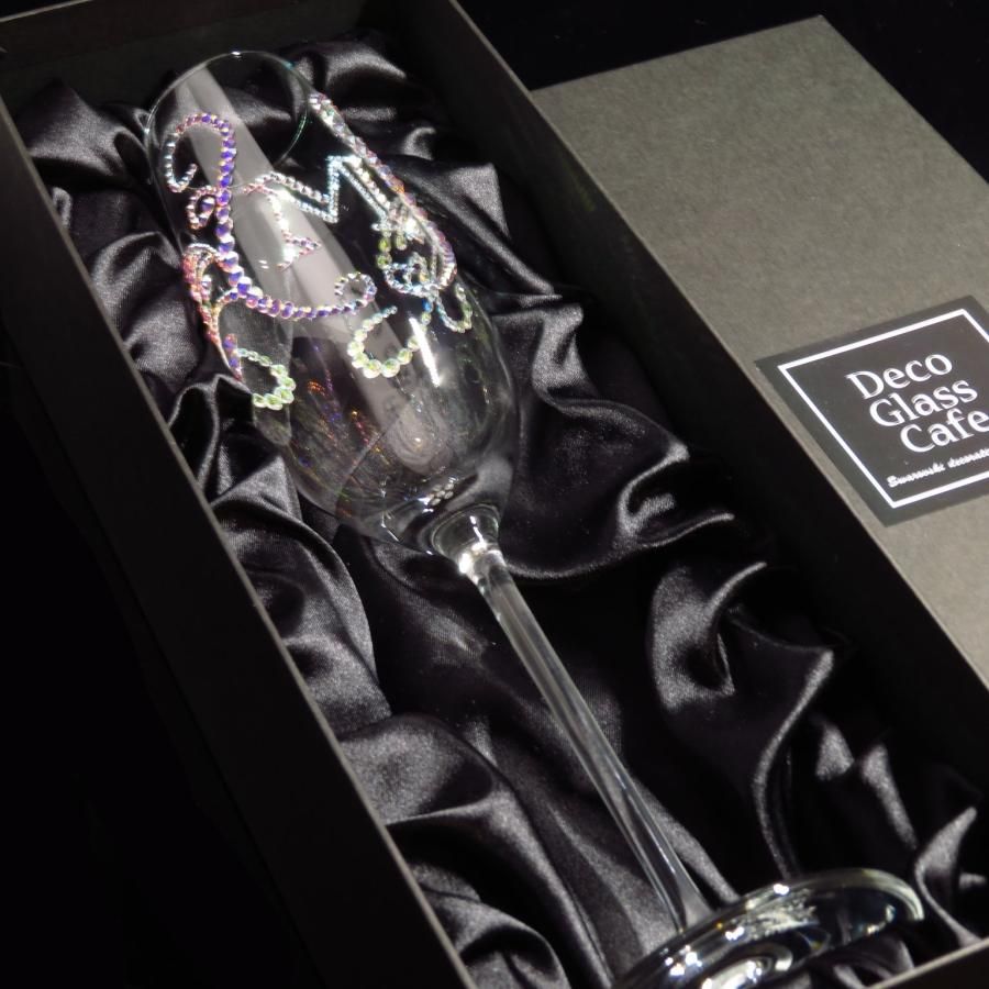 【シャンパングラス ティアラ×イニシャル ブロック体】高級ギフトボックス付き 結婚祝い 誕生日 プレゼント ギフト スワロフスキー デコグラス